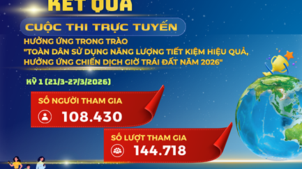 Sắp diễn ra cuộc thi trực tuyến hưởng ứng phong trào “Toàn dân sử dụng năng lượng tiết kiệm hiệu quả và hưởng ứng Chiến dịch Giờ Trái đất năm 2026”