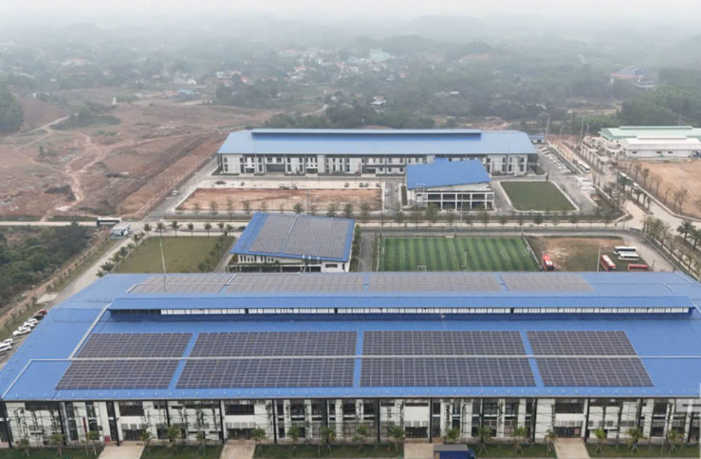 Hệ thống điện áp mái năng lượng mặt trời được đầu tư lắp đặt tại Nhà máy TNG Việt Thái tại Cụm Công nghiệp Sơn Cẩm đã được vận hành sử dụng. (Ảnh: Báo Thái Nguyên)