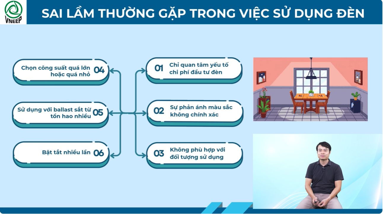 Chuyên đề “Sử dụng năng lượng tiết kiệm và hiệu quả trong hệ thống chiếu sáng” giới thiệu các yêu cầu cơ bản về chiếu sáng, cách lựa chọn thiết bị và bố trí, vận hành hệ thống hợp lý nhằm giảm tiêu thụ điện năng.