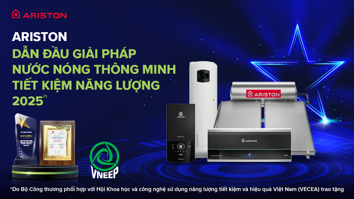 Tại lễ vinh danh Các giải thưởng hiệu quả năng lượng năm 2025 do Bộ Công Thương tổ chức, Công ty TNHH Ariston Việt Nam (Ariston Việt Nam) đã khẳng định vị thế dẫn đầu trong lĩnh vực gia nhiệt tại Việt Nam khi đạt hai chứng nhận quan trọng: “Giải pháp nước nóng thông minh tiết kiệm năng lượng” và “Thương hiệu bình nước nóng hiệu suất năng lượng cao nhất”.