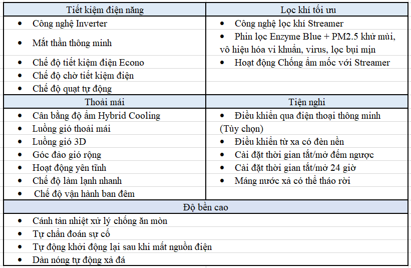 | Hiệu suất năng lượng: | 6.20 CSPF |