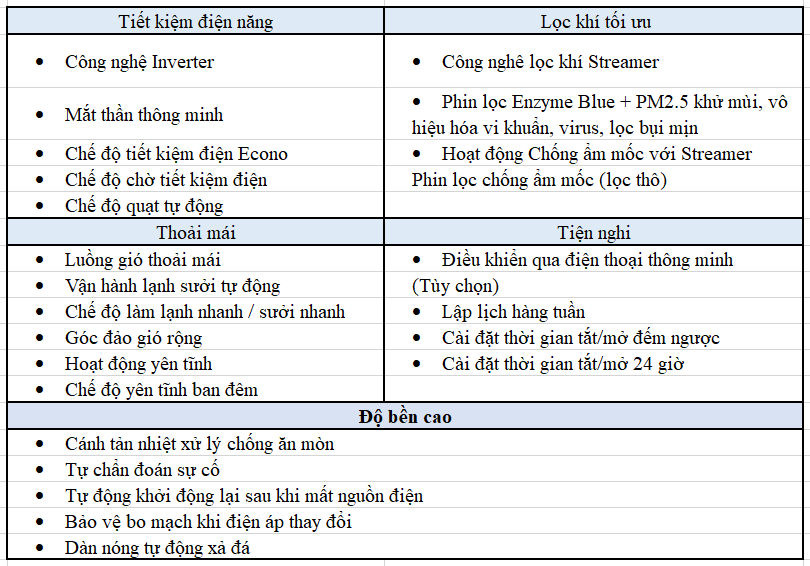 | Hiệu suất năng lượng: | 6.50 CSPF |