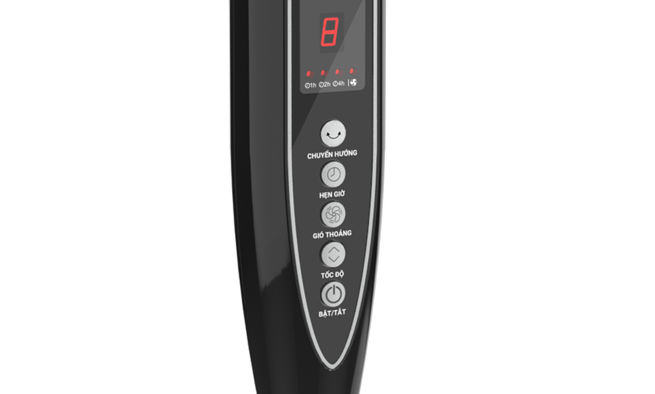 - Thêm nhiều tiện nghi: Gia tăng tiện ích: Hẹn giờ, Chuyển hướng quay, Màn led hiển thị, Gió thoảng, Tùy biến chiều cao (1m22-1m37), điều khiển từ xa.